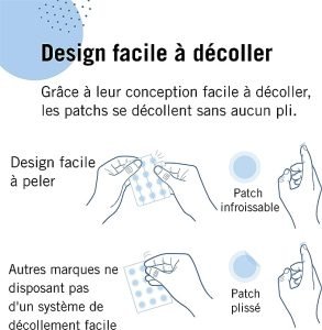 - Facilité d’Utilisation : L’application des patchs est simple, il vous suffit de les coller sur la zone affectée de votre peau.